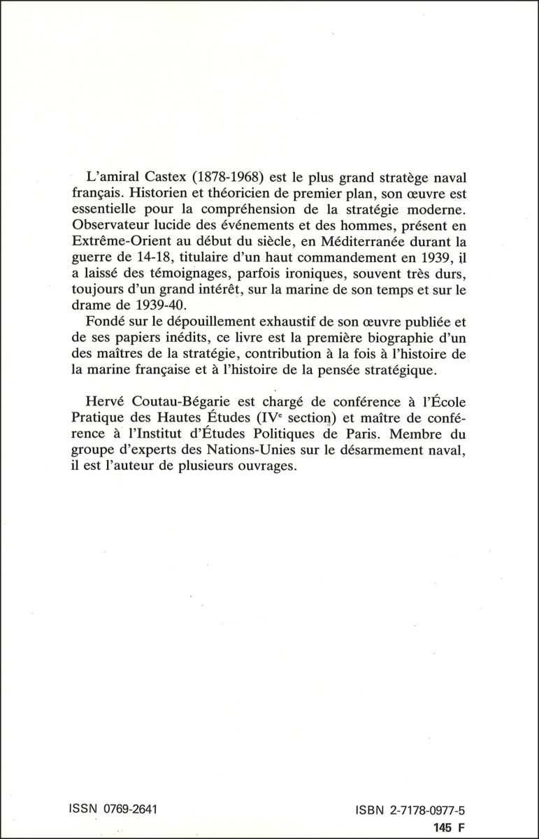 À partir des écrits et des archives inédites de l’amiral Raoul Castex, cet ouvrage propose une biographie intellectuelle d’un des plus grands penseurs de la stratégie navale.