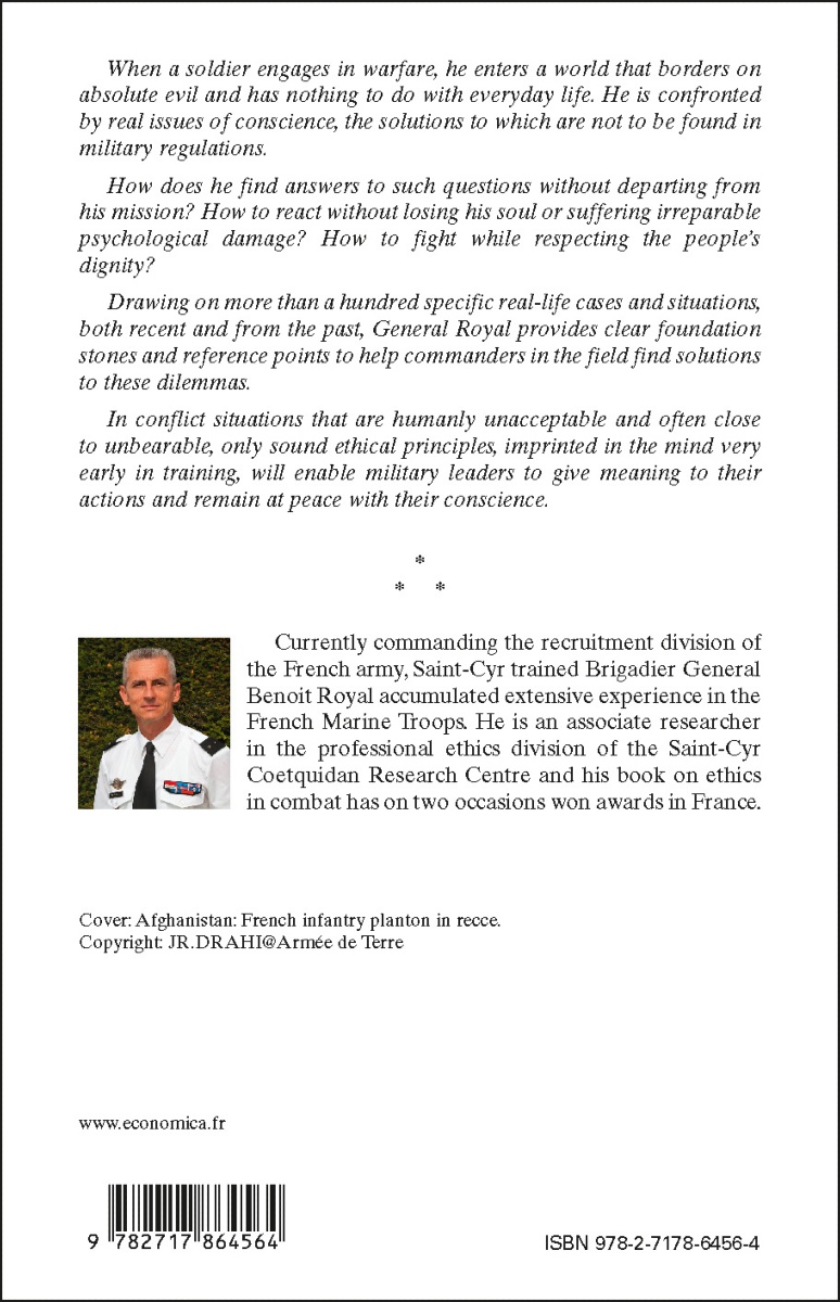 Currently commanding the recruitment division of the French army, Saint-Cyr trained Brigadier General Benoit Royal accumulated extensive experience in the French Marine Troops. He is an associate researcher in the professional ethics division of the Saint-Cyr Coetquidan Research Centre and his book on ethics in combat has on two occasions won awards in France.